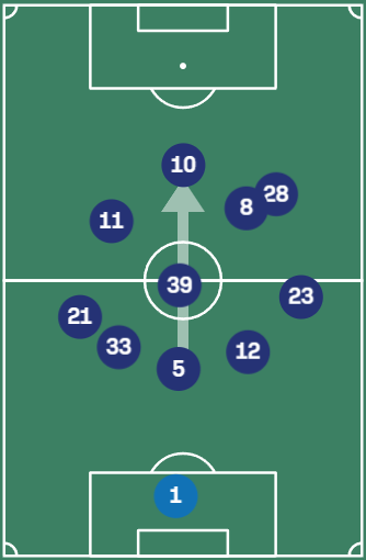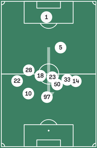 This game highlighted ho important it is to always cover that central midfield area at all times. Even if it means a 36 year striker is going there.