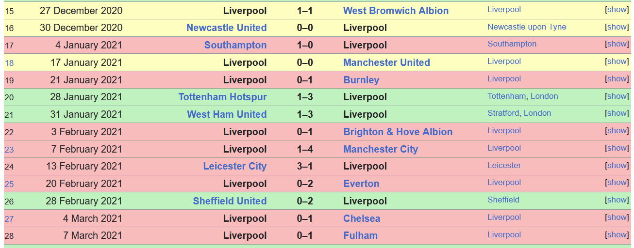 I am well aware that Klopp and team eventually dug out of that rut. And we dont look to have hit bottom yet, but its still a glance at how bad our post-PL winning season under Klopp was.