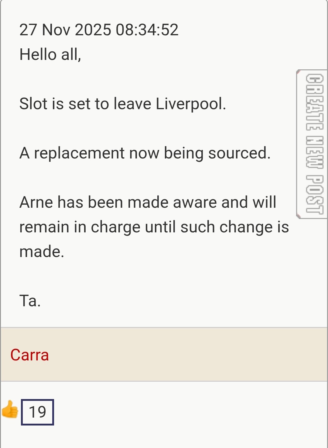 We clearly have problems as a club, and it looks more likely than not that Slot will face the chop at some point, but I am hoping he can get a result or two to give us a foothold for a turnaround.
