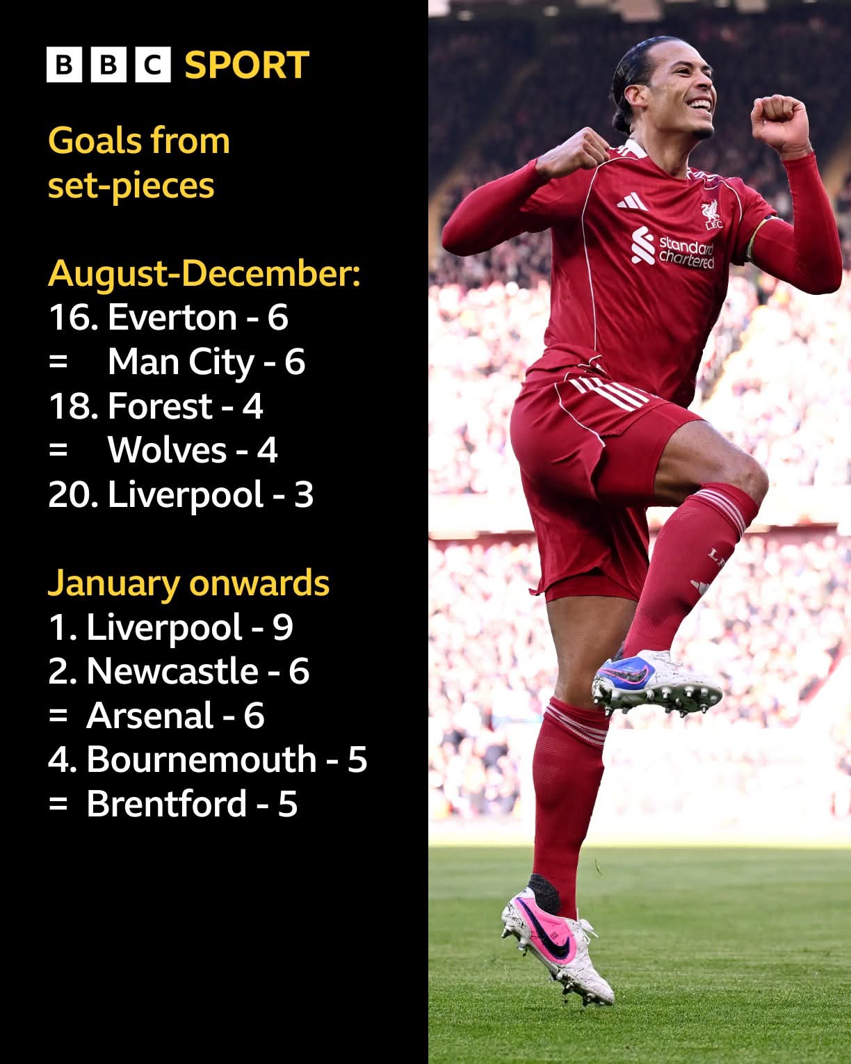 I read an article in the Athletic this week on the change in fortunes in the set pieces. Apparently there have been some relatively minor tweaks made but the club’s view was that the poor returns on set pieces in the first half of the season, and the improvements during the second was more down to normal statistical variance, i.e we ran cold now are running hot as it were.