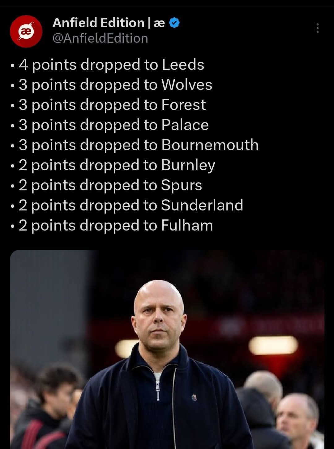 We won the league last year because of Klopp, and in spite of Slot. Big Jurgen’s muscle memory is now in the past, Slot’s fingerprints are now all over this team, and we’re seeing the results of that - we could even see it last year when w stumbled over the finish line, and we laughed it off saying the lads were already on the beach.