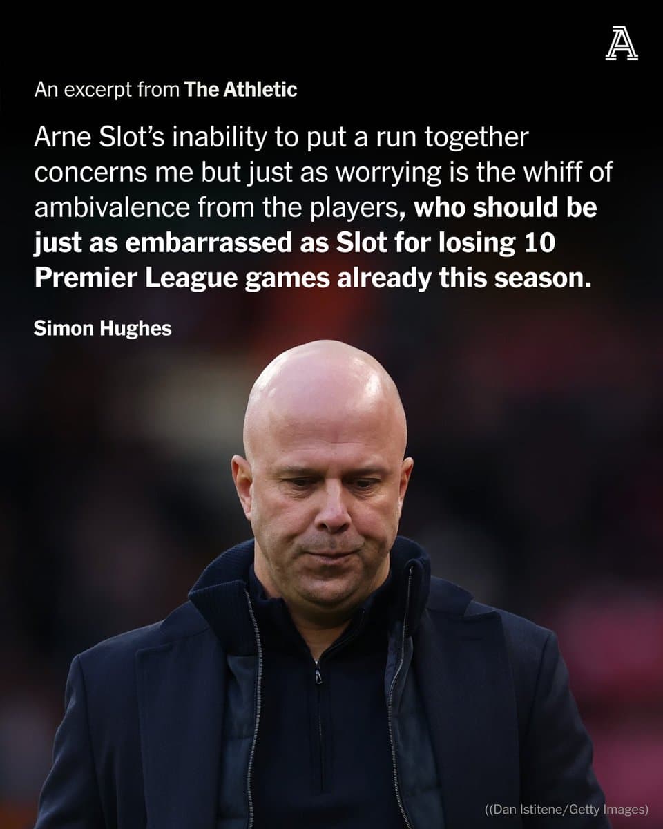 I don’t know why it’s so hard for people to accept that he did brilliantly in 24/25, won the league and we all had a great time. But then he is going really poorly in 25/26, we’re awful and we’re having a miserable time.