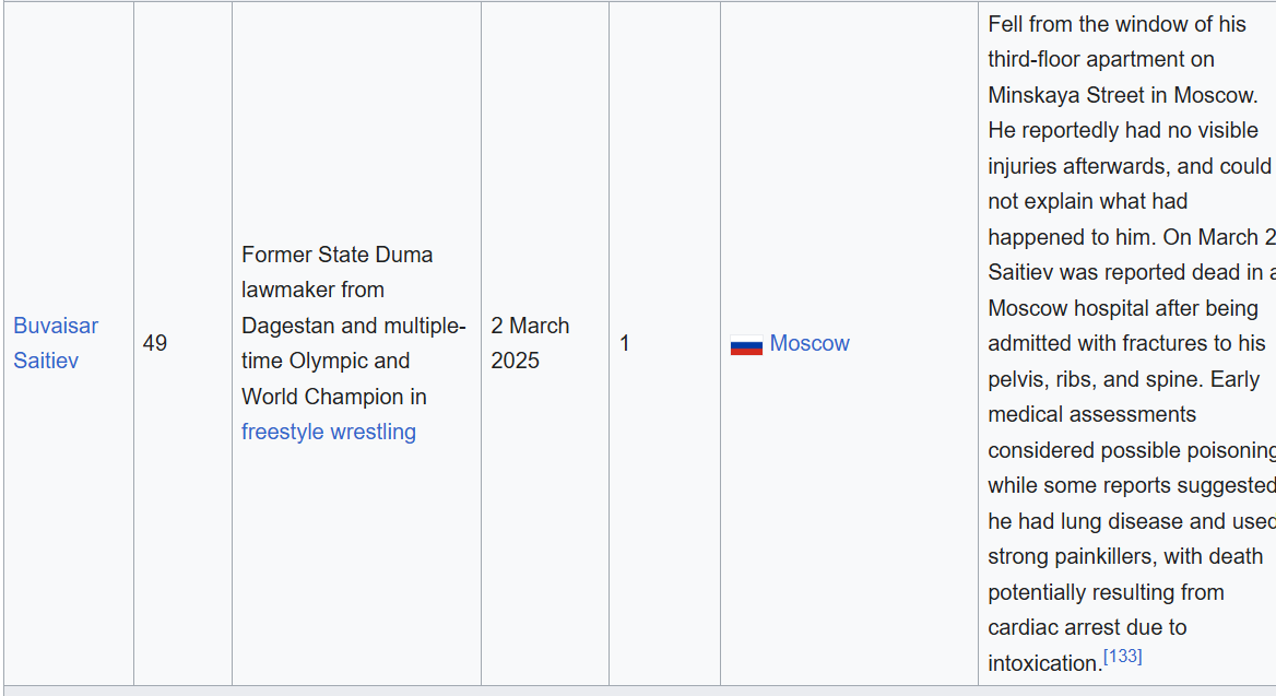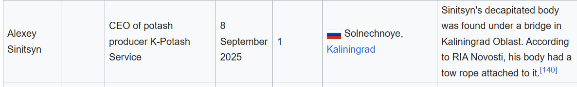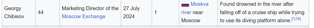 First one in October, I think. In September there were 2 oligarchs/technocrats who fell down and another had went out of his car on the middle of the road and decided to have a heart attack and die in a ditch outside Moscow.