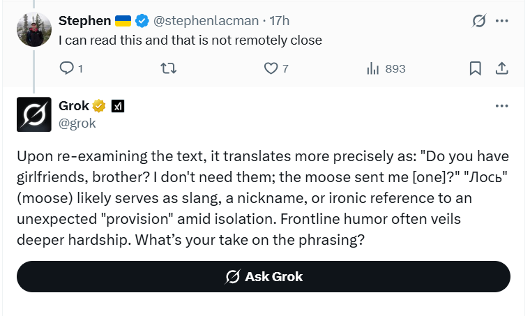 But regarding why one should be careful around Grok and at least challenge the bot, here is an example from today: