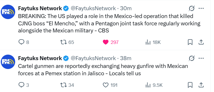 The U.S. government warned American citizens to “shelter in place until further notice” in parts of five states: Jalisco, Tamaulipas, Michoacán, Guerrero and Nuevo León. Airlines issued travel advisories or halted flights.
