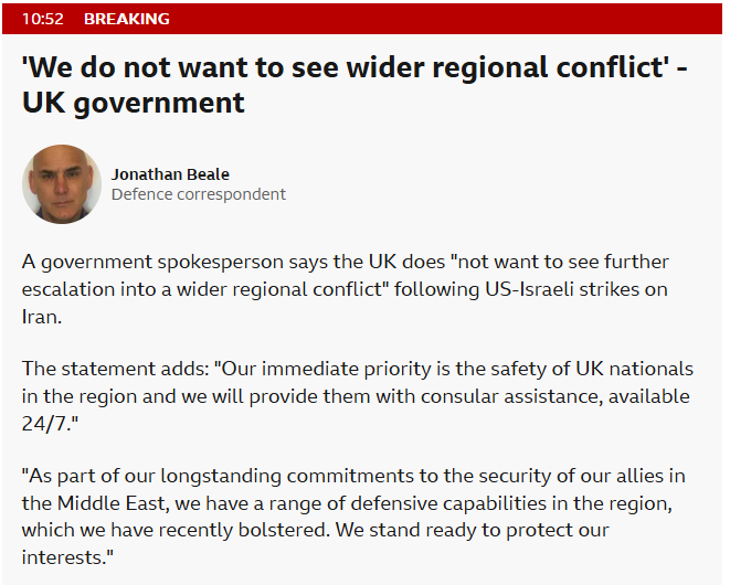 Found this a bit sneaky. Though the beeb understands the uk was not involved in the current phase it seems the door is open to some type of involvement, see the third sentence in the sinpit below…