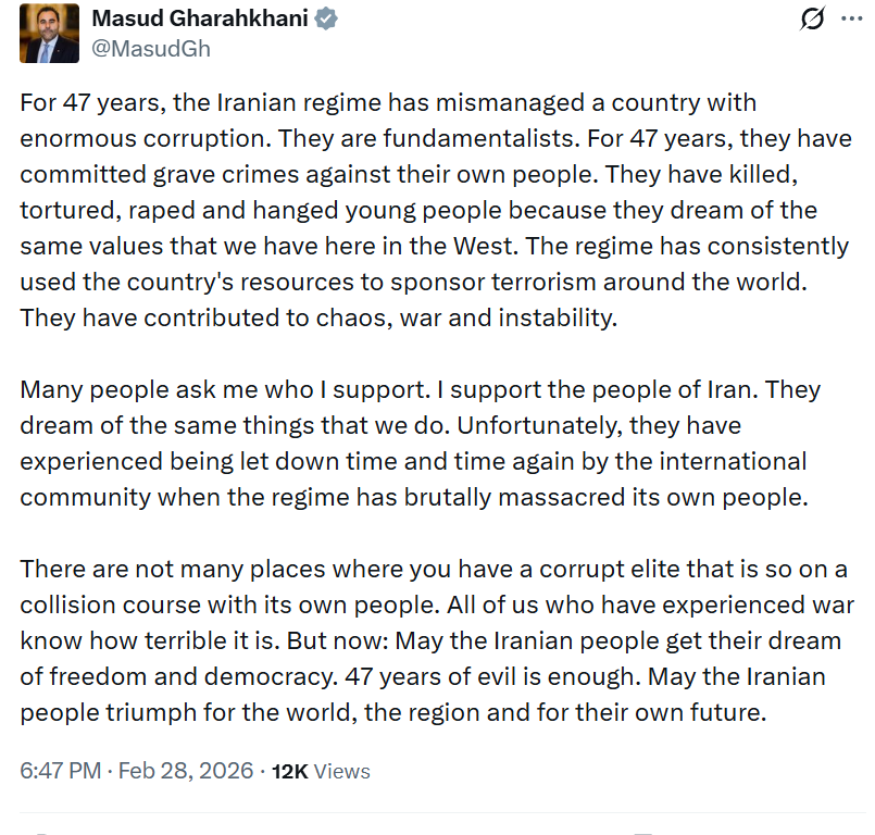 Gharahkhani is one of the nicest guys in Norway, but imo such statements, that could be misunderstood, should be calibrated with the Prime Minister and Foreign Ministry. This is grey…