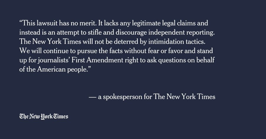 Trump has filed a $15B defamation lawsuit against NYT over their…well, it’s not exactly clear what the argument it other than a collection of unrelated stories that he thinks are mean towards him.