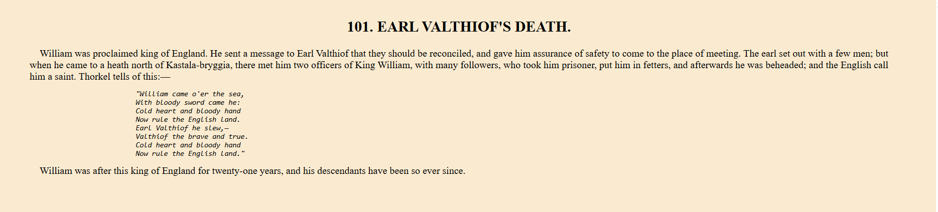 William (or Viljan) the Bastard, he was called. His father never married and after the death of his father, he had to spend a couple of years pacifying the great men and nobles who did not want to acknowledge his inheritance after his father. This he ruthlessly did.