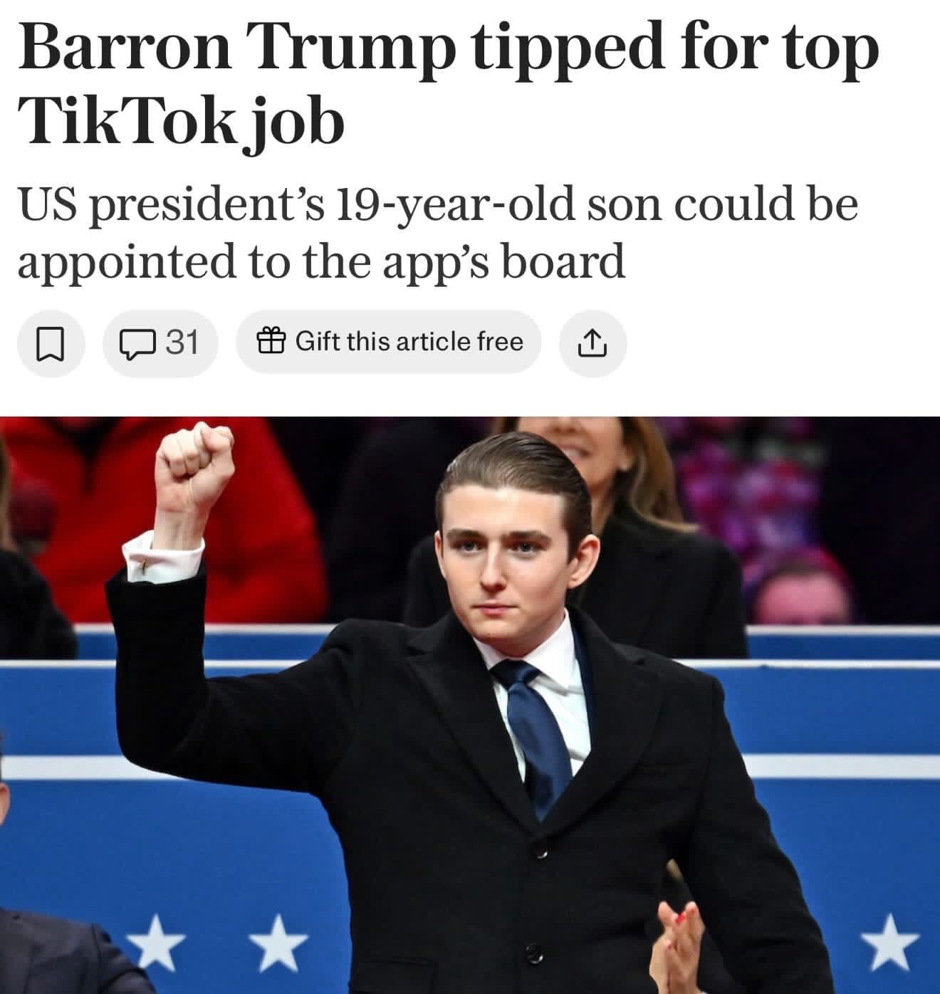 Aren’t we surprised? Trump putting his dirty paws on everything, now pushing his kid down the same road.