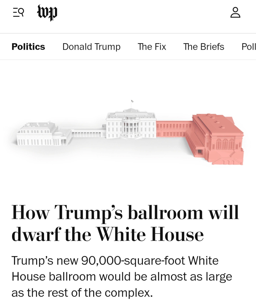 In many ways I think the ballroom is just the thing, for Trump. It changes the news cycle in the direction of a fight that he does want. And it appeals to his vainglorious disposition.
