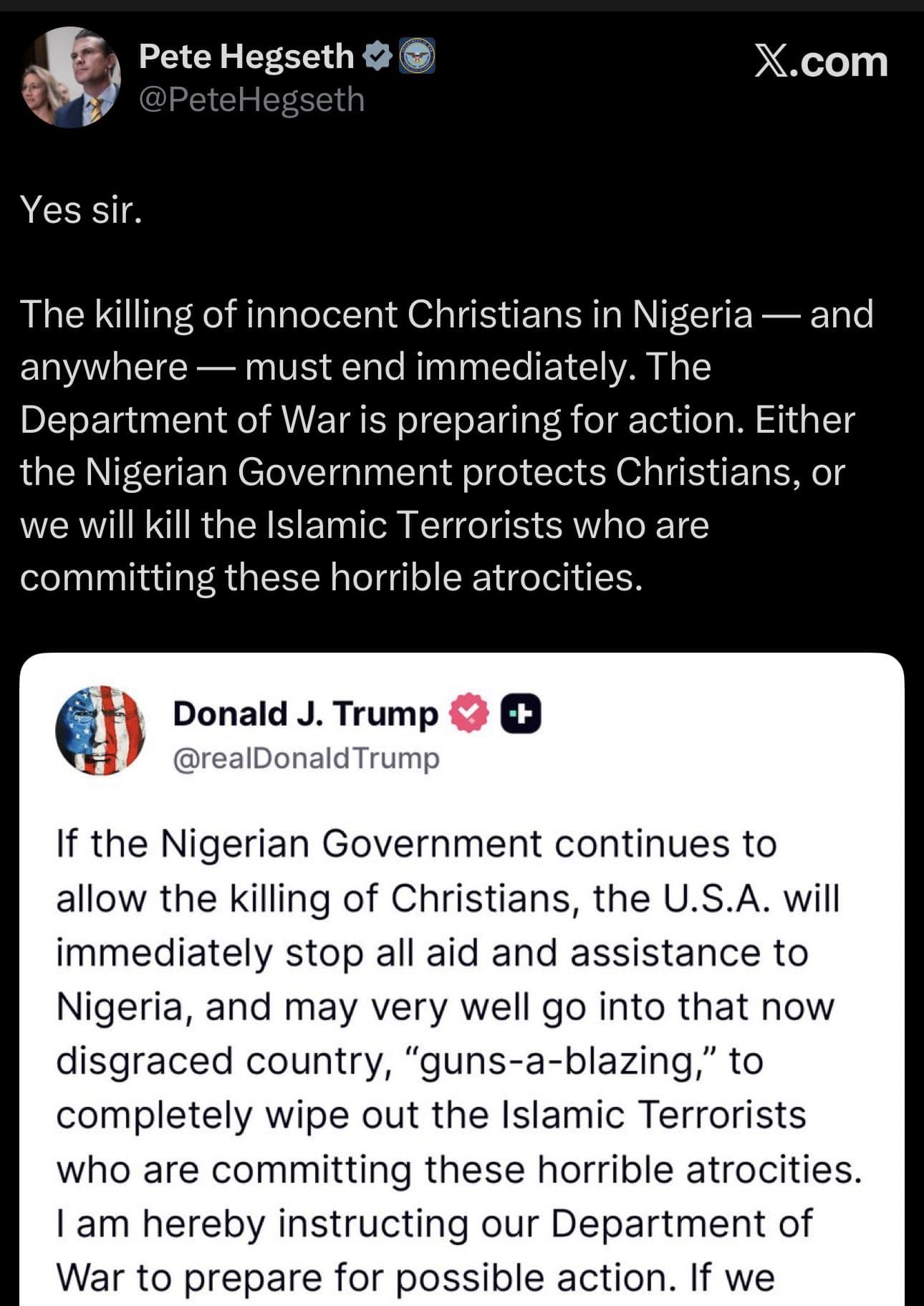 Also, MAGA supposedly hated military intervention abroad, but Nigeria, yes Nigeria, that is cool (judging from comments supporting this half baked idea)