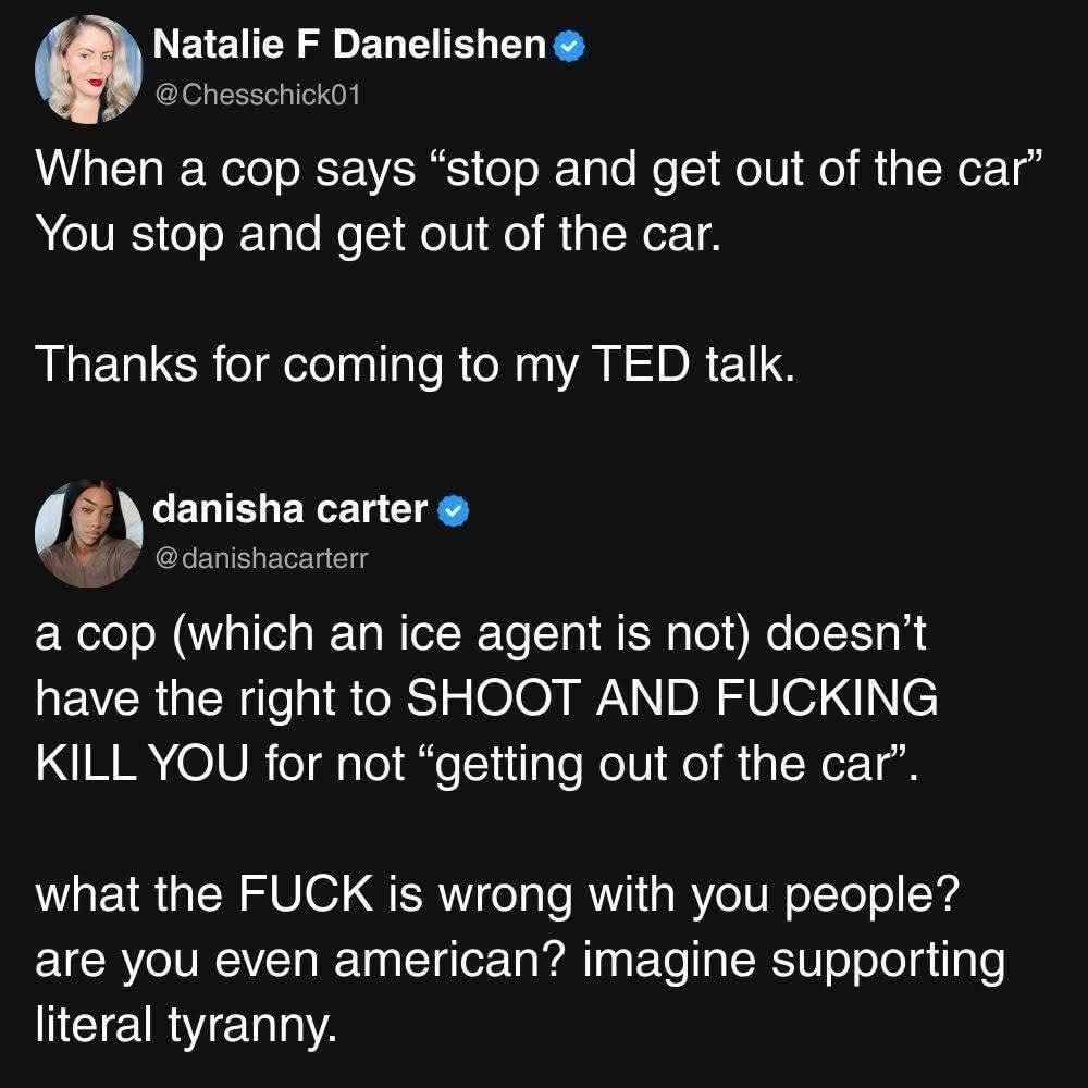 From an actual lawyer… "There seems to be a lot of Keyboard attorneys online today. So, as an actual attorney, I’d like to cite actual law. The ICE officer in MN violated both protocol and case law. 1) officers are not allowed to fire into a moving vehicle 2) lethal force is not allowed to prevent someone from fleeing 3) case law is clear, an officer cannot intentionally place himself in front of a vehicle and then allege self defense At best, this officer acted with a reckless disregard for public safety and is guilty of negligent homicide. Federal agents do not have blanket immunity from state laws or criminal prosecution. They can be prosecuted by state authorities for violating state laws if their actions were unauthorized, unlawful, or unreasonable, even if they were on duty.