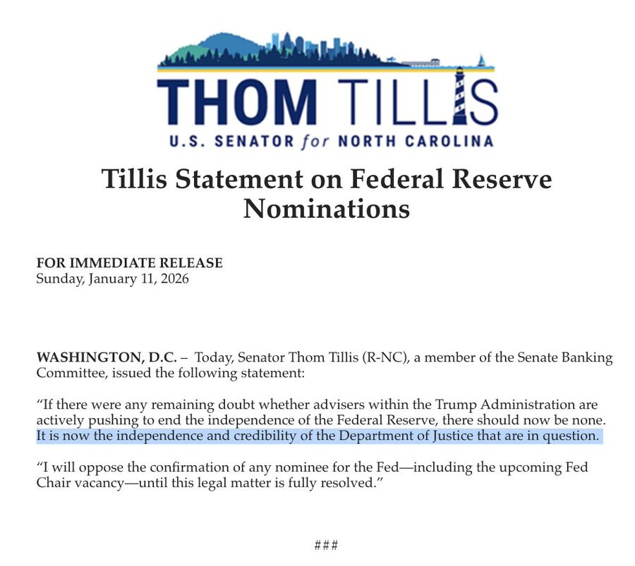 Pure comedy. The DoJ considering charging Powell over renovations to Fed buildings but Trump knocks down the entire East Wing of the White House without permission and there’s nothing to see.