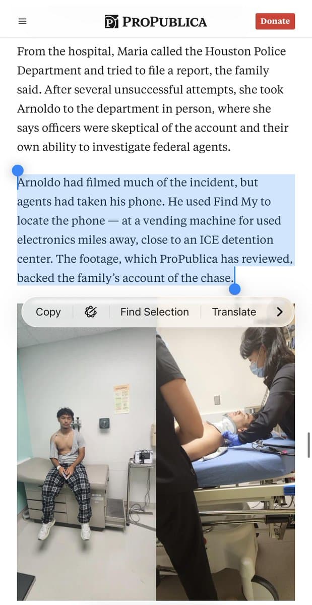 He is a minor and US citizen who was beaten up by ICE and arrested by ICE for filming them and in the process lost the phone he was using to film them.