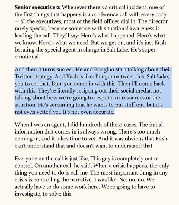NYT have published a piece on how Kash and Bongino were perceived by rank and file at the FBI. It’s brutal.