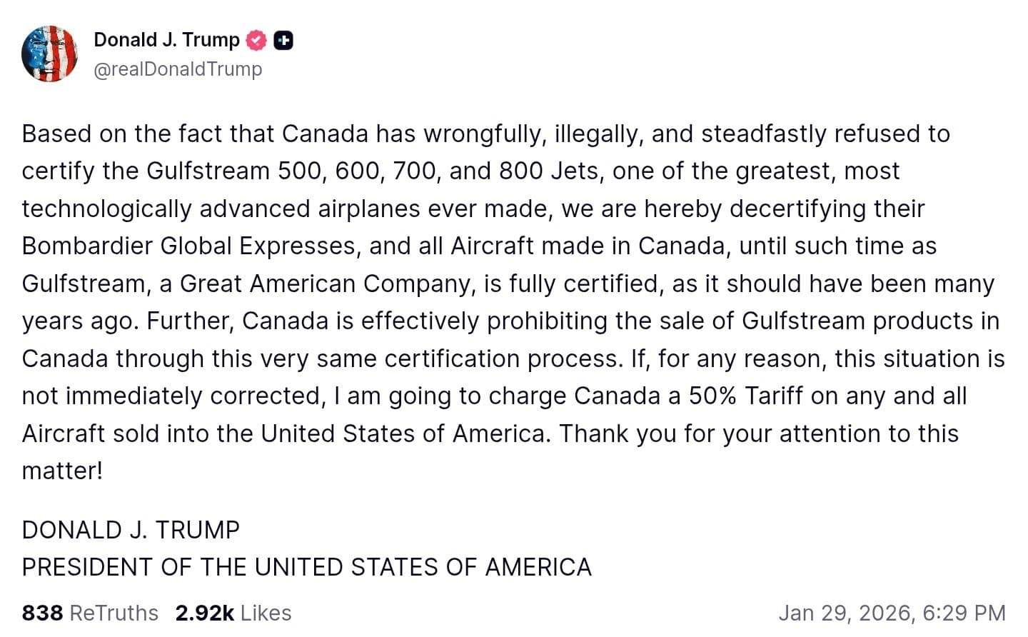 Petty of course, but also extremely counter productive (one would think Trump would understand that this risk sales of jets and aircrafts worth billions)