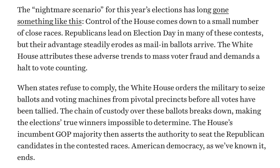 Keep in mind, we already have SC precedent from Bush vs Gore that essentially says “party A is winning for the ballots already counted, and as we dont know how to resolve the issues with the remaining ballots we’ll just stop it here and declare party A the winner”.