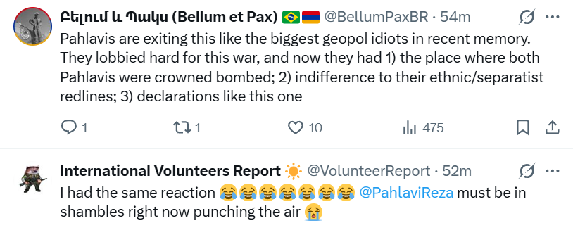 The fact that he says this is going swimmingly is also a bit special. Sure, only Day 3 and Iranian BM capacity way down, but…