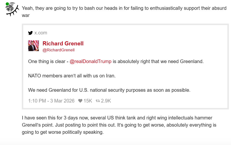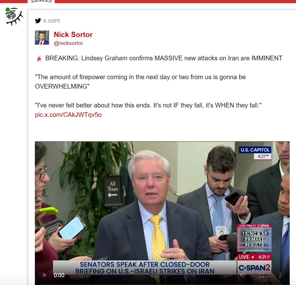 It’s just that we don’t really agree on intepretation. No one is trying to be mean or ignore you. It’s just a bit baffling for me and it doesn’t feel right to post Trump takes, or US congressional discussion on the war, in a war-thread where information on bombing runs and invasion of Lebanon is being posted.