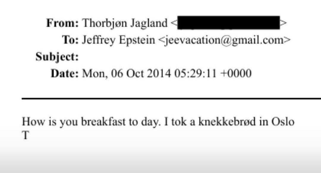 I need to develop a crush on you like this Jagland guy toward Epstein before sharing my breakfast details.