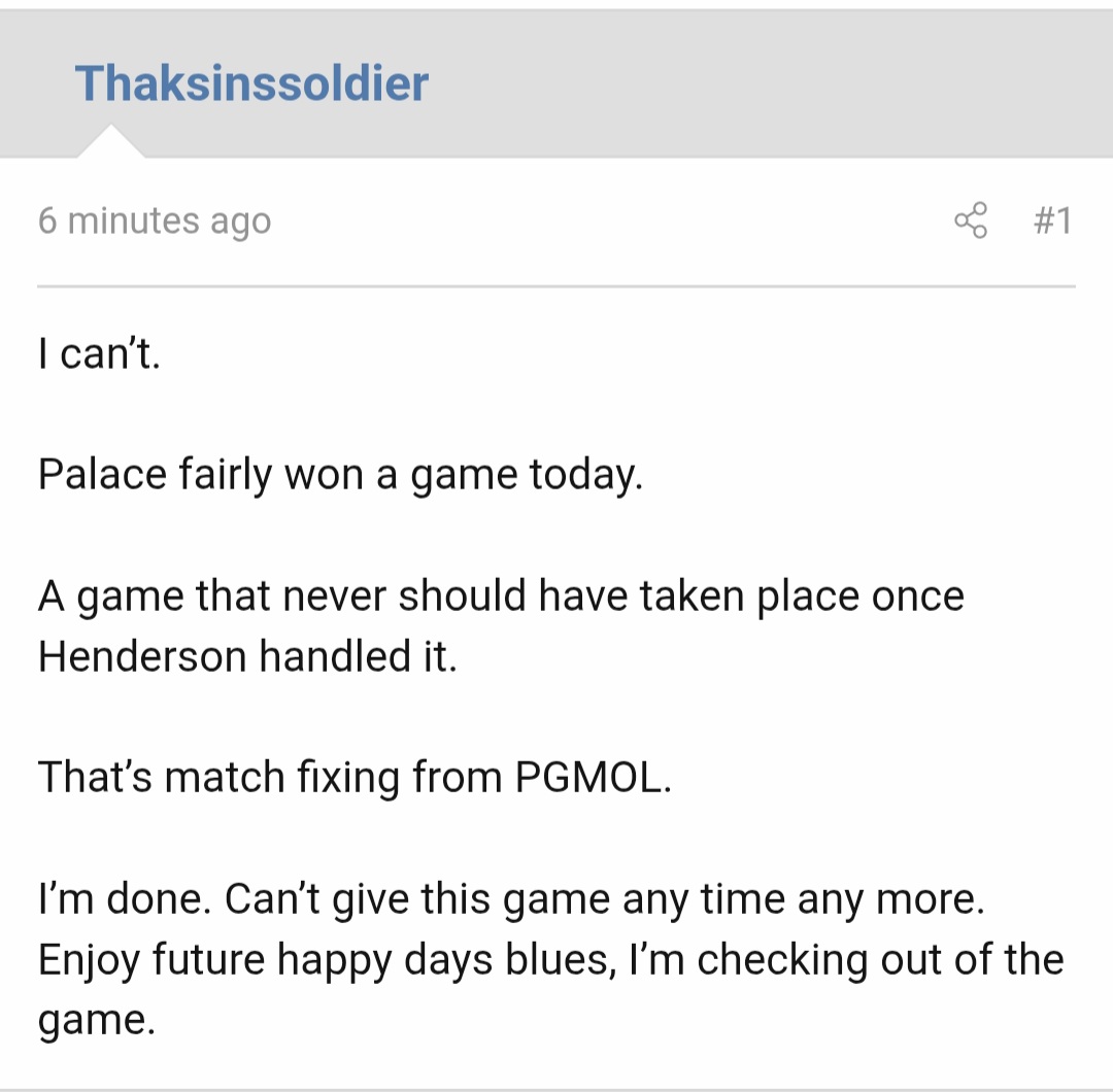 Crystal Palace play us next week. I am not sure which team will be in the mood to win next week.
