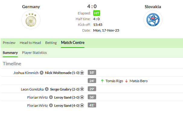 He is absolutely majestic this first half he is everywhere his razor sharp passing has helped Germany go 4:0 up.