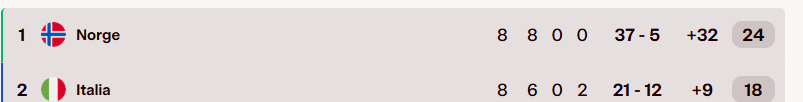 Norway just added to the goal difference. Italy moaning about second place ![]()