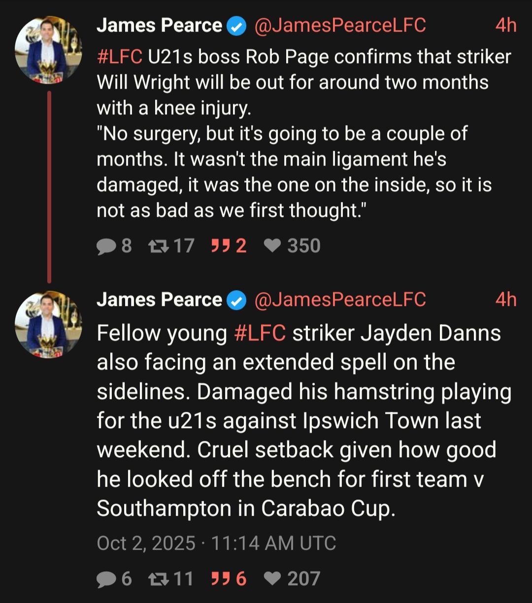 [My own thought] United likely to be too soon for either, but expect us to have a good deal more flexibility for how to approach the 3 upcoming cup games with this news.