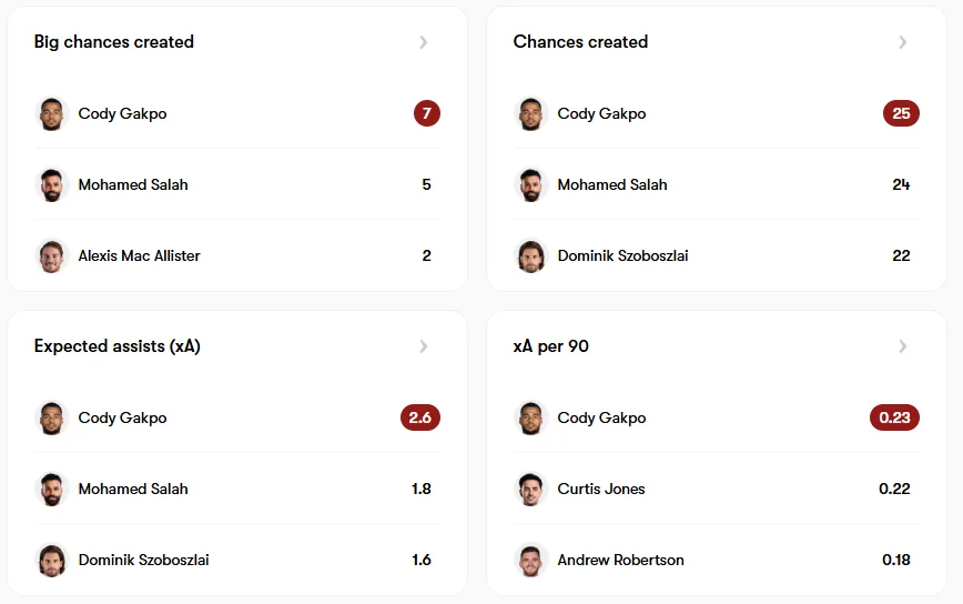 The 2 most malinged Liverpool players leading the stats in the Premier league games Liverpool for attacking contributions.