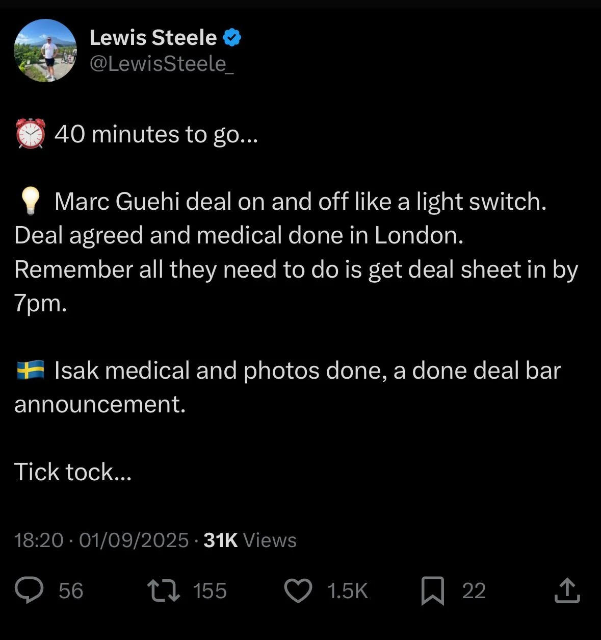 It will get messy, Glasner will go anyway, and Guehi, if he doesn’t move now, will probably come in January for 15M or next summer for free.