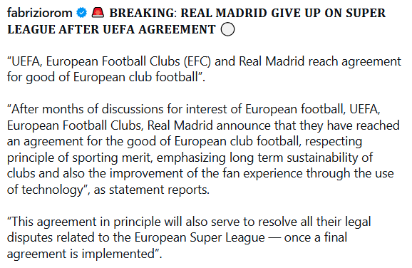 The critical thing to keep in mind is that a marketing company called A22 was the driver in the original failed effort. Real and Barca may have an interest in keeping the idea going because they feel UEFA has too much control over them now, but A22 NEED it to keep going because it is their only way to weasel their nose into the trough.