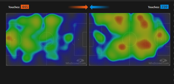 Just four shots on goal despite nominally having over an hour of possession is pretty grim. They did not threaten much, but after the penalty they didn’t really need to. The heat map really shows how effectively they kept LFC at arm’s length.