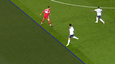 Two things are notable here. It looks like the ball is still touching Lo Celso’s foot so the pass has not yet been made. What does the following frame show? Nobody knows.