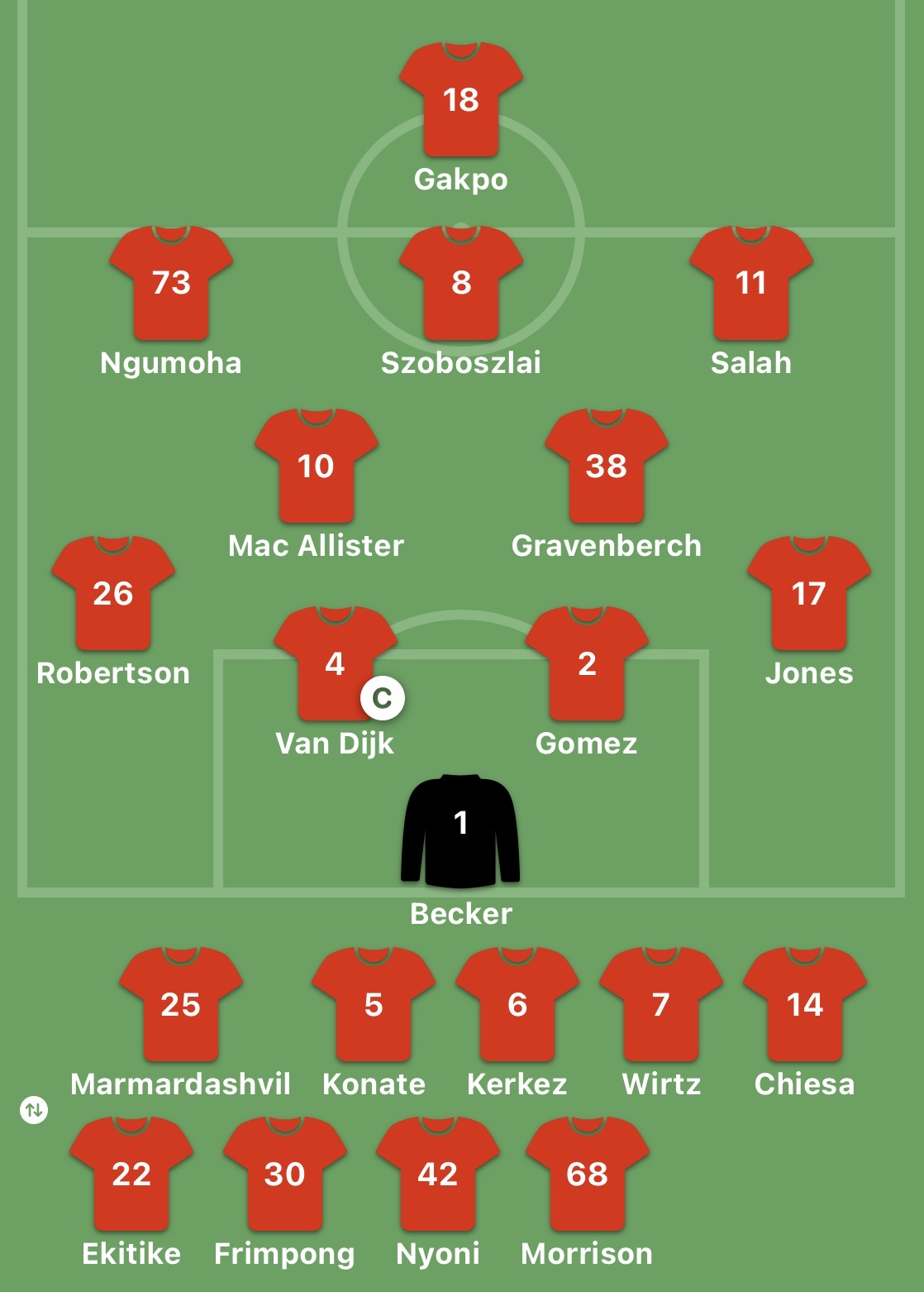 Unused subs: Mamardashvili, Kerkez, Chiesa, Ekitike,
