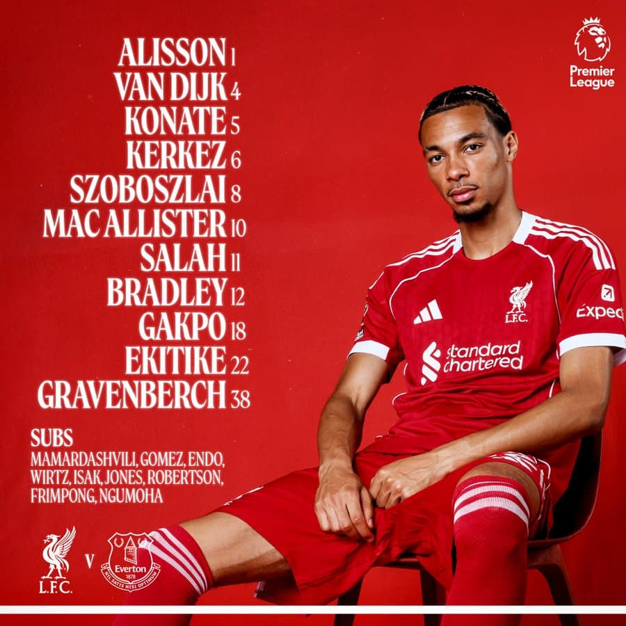 Liverpool: Alisson, Van Dijk, Konate, Kerkez, Szoboszlai, Mac Allister, Salah, Bradley, Gakpo, Ekitike, Gravenberch.