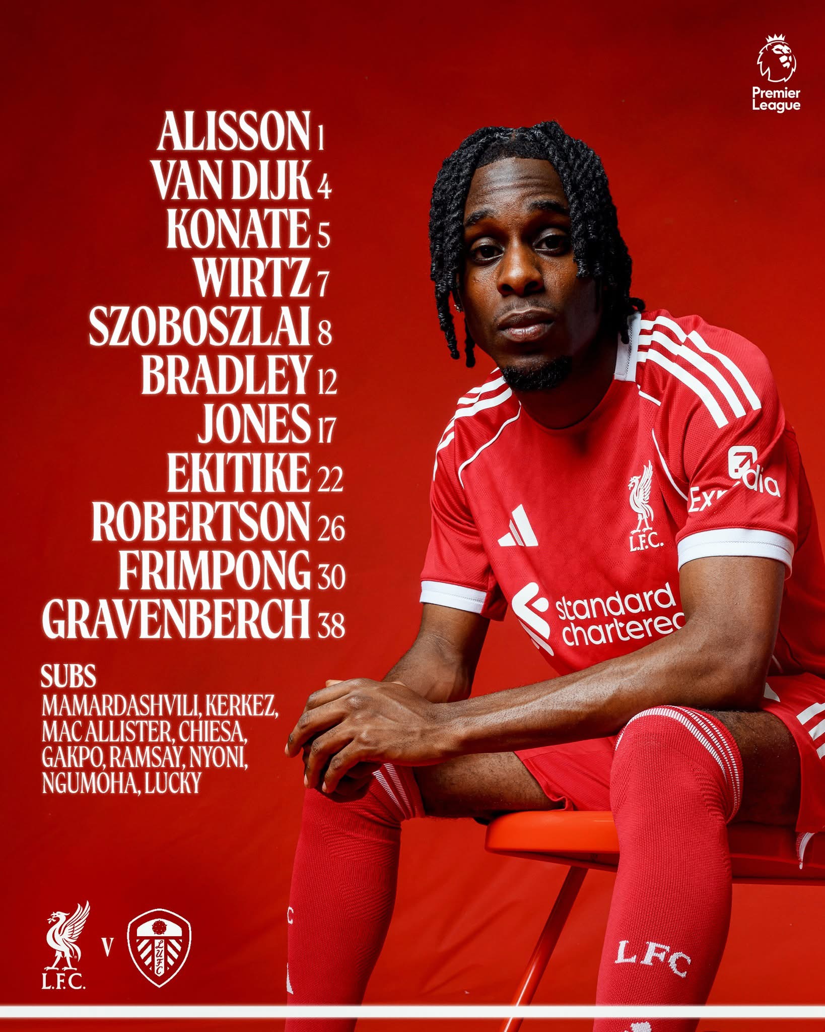 Liverpool: Alisson, Van Dijk, Konate, Wirtz, Szoboszlai, Bradley, Jones, Ekitike, Robertson, Frimpong, Gravenberch.