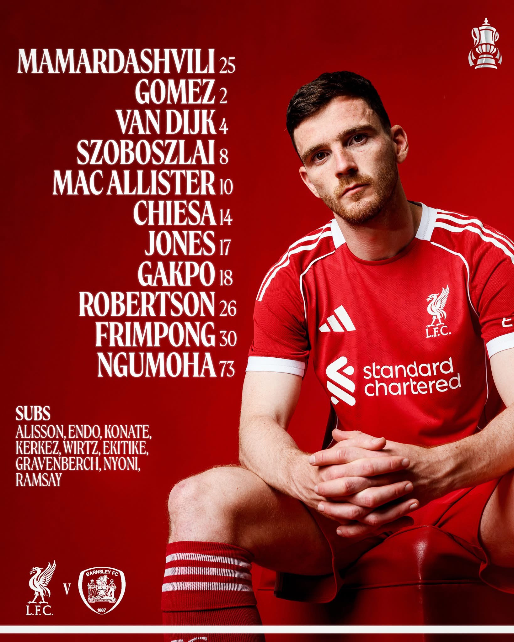 Mama, Frimpong, JG, VVD, Robbo, Szobo, Macca, Jones, Chiesa, Gakpo, Rio