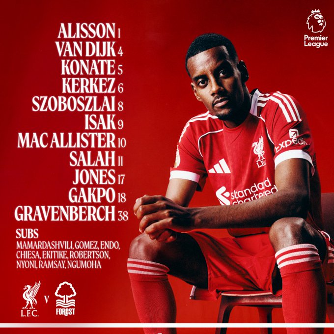Ekitike has been doing well but I am glad to see Isak start. He needs to get his Liverpool career going. It might be tough for him today, as we are missing Wirtz’s creativity and Szoboszlai may be at right back.