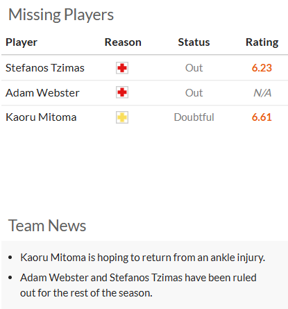 TLDR: Salah injured, Gomez on bench, Brighton tomorrow lunchtime.