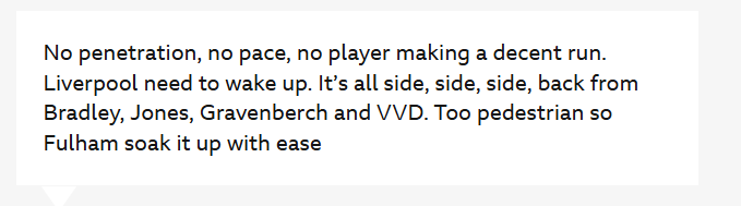 Didn’t think we could perform worse than we did against Leeds but I was wrong again. Slow,no confidence and so predictable. I beginning to think like the Slot out brigade.