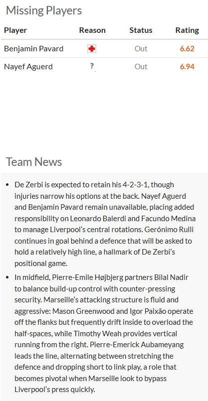 Ibrahima Konate back in France for family reasons. Remains to be seen whether he links up with the squad in Marseille.