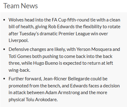 You never know what you are going to get with Liverpool at the minute. I could see some sort of response and a comfortable win. I could also see Wolves give us a hard game as they have the bit between the teeth. I could also see another tame display on our end.
