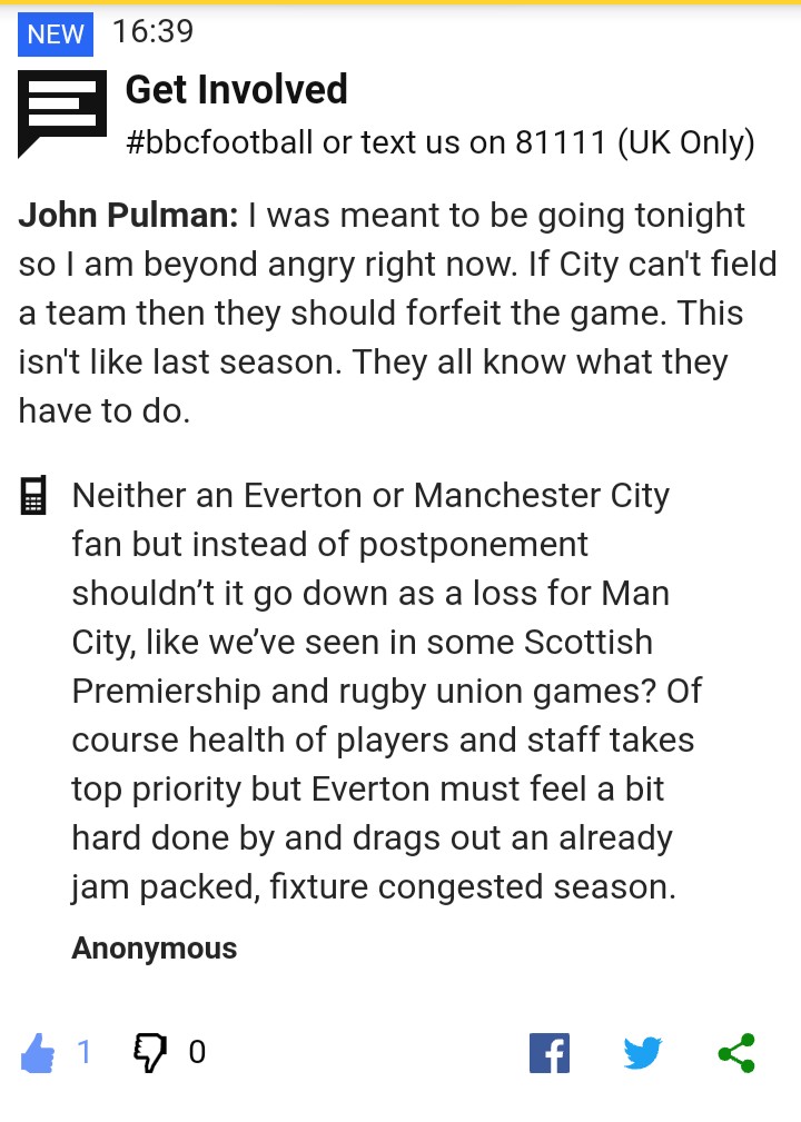 Everton game postponed, according to BBC Sport