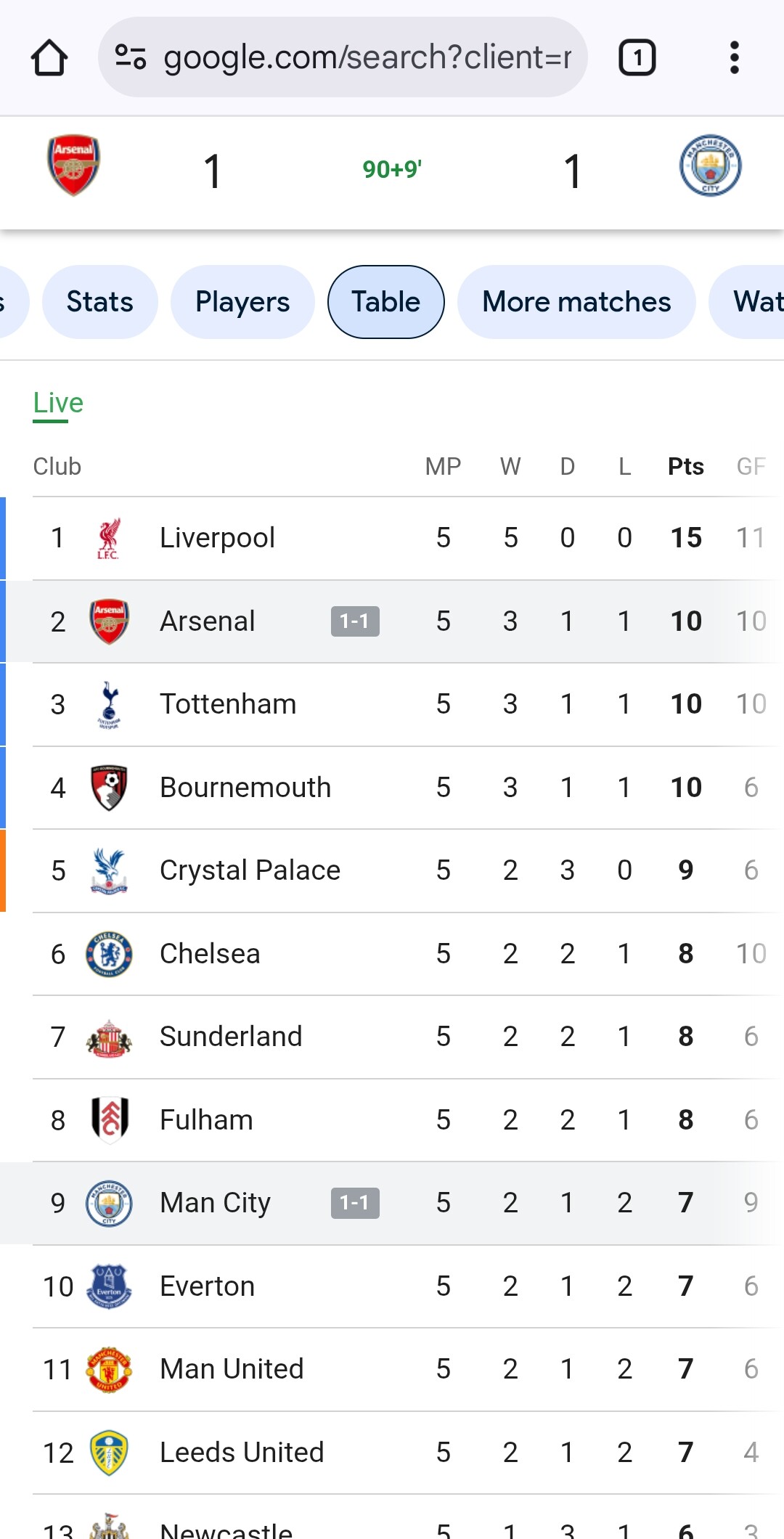 They are on bbc sport tables page