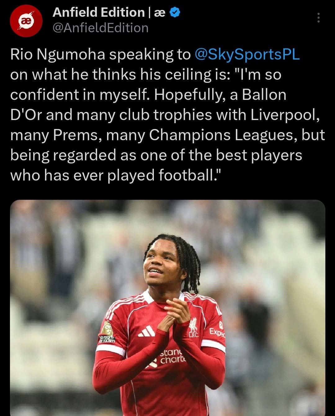 Frankly, I disliked more him saying that he looked up to Neymar as a forward and also mentioning that his first Liverpool memory is the 2019 CL final, which made me feel incredibly old, but overall, I thought that he came off well.