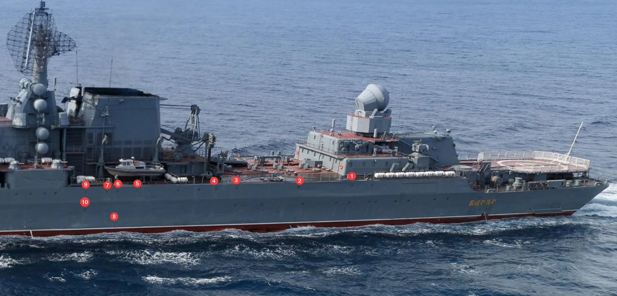 It does look like there is black fire damage around several of the below-deck apertures, so more than just a single large blast.