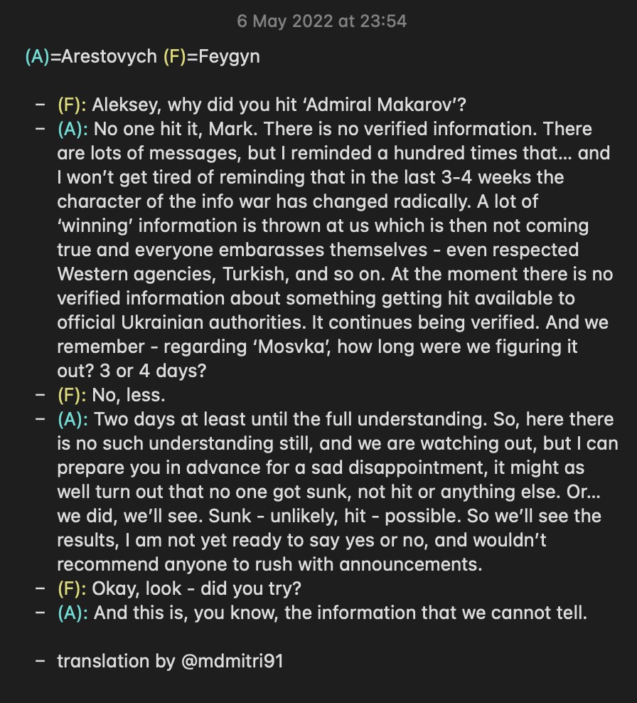And that’s the end of it. When Arestovich denies it ( he is the only Ukrainian source I really trust), then I don’t see how it could have happened (I think it means they tried to attack it but probably failed):