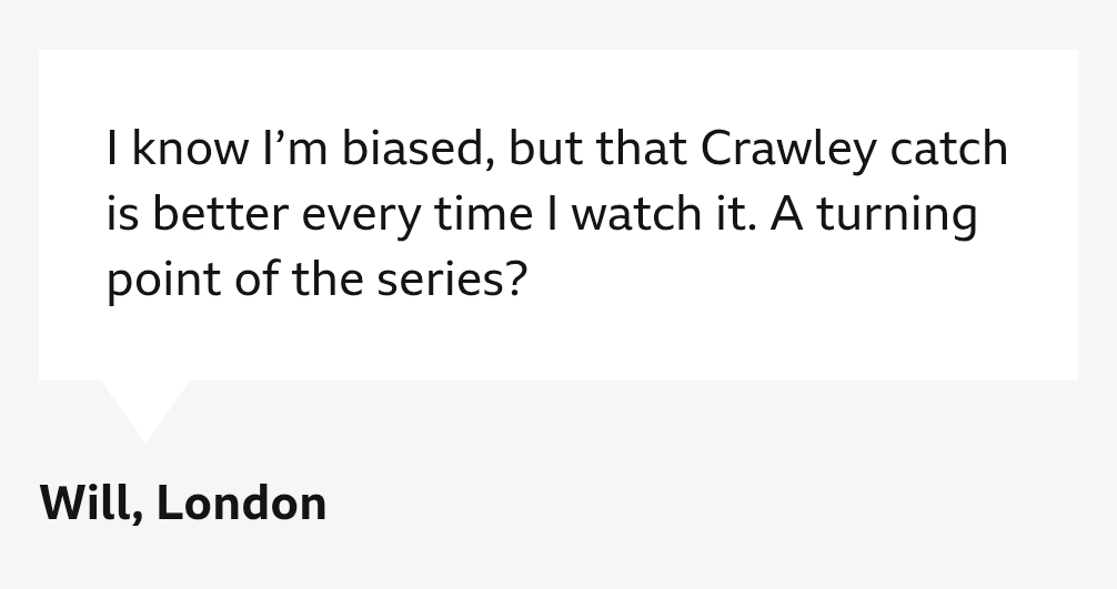 It wouldn’t be a surprise to me if Bashir never played for England again. A baffling selection in the first place based on a small social media clip. Feel for those of far superior talent who have been overlooked and discarded over the past couple of years.