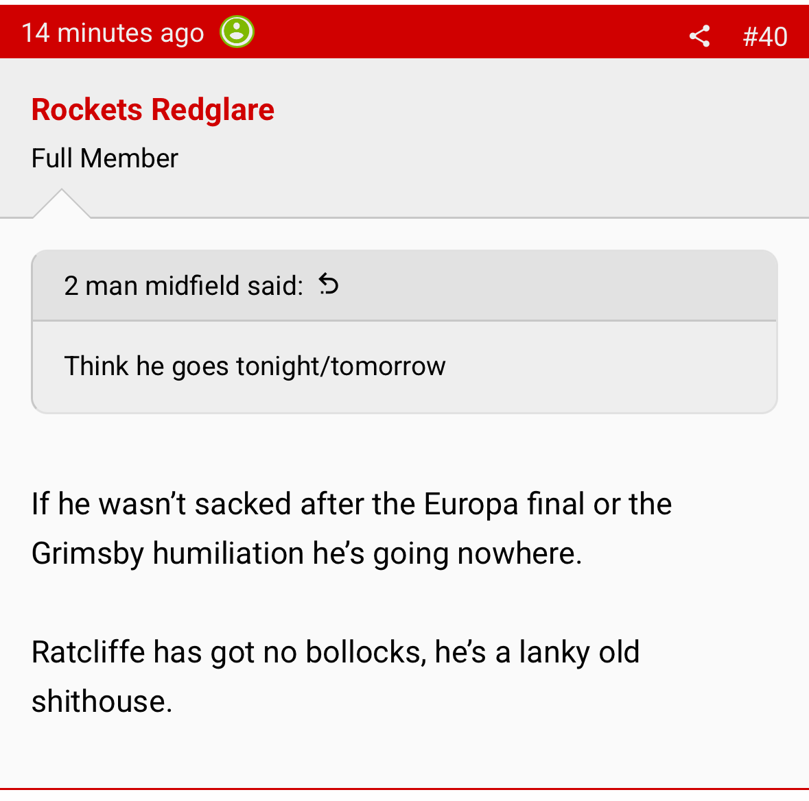 I think there will be some truth to this - Ratcliffe and others having gone to so much effort to bringi him in and back him that they have backed themselves into a corner - its somewhat a ‘too big to fail’ moment.